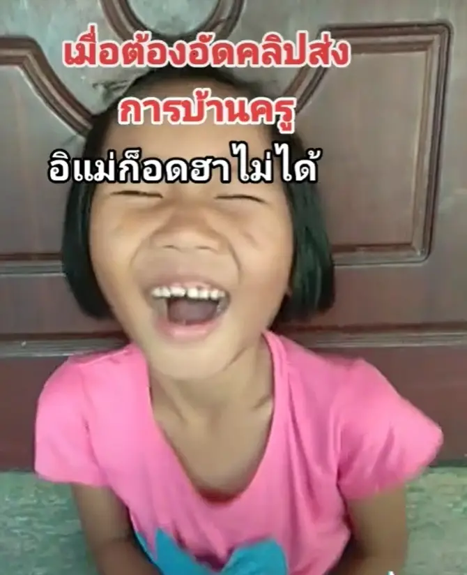 งานนี้ทำเอาแม่ที่ยืนถ่ายคลิปให้ลูกสาวสุดน่ารักคนนี้ ถึงขั้นกลั้นขำไม่อยู่จนต้องหัวเราะออกมา ทำเอาสาวน้อยเขินและหัวเราะออกมาตามแม่ จึงทำให้ฟันของสาวน้อยรายนี้กระแทกเข้ากลับโทรศัพท์อย่างจัง