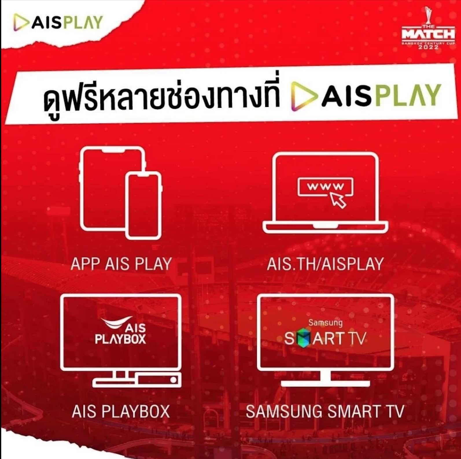 ลูกค้าสามารถเข้าชมผ่านเว็บไซต์ ais.th/aisplay จากนั้นเลือกเมนู Log in ตามด้วยใส่หมายเลขโทรศัพท์เพื่อรับรหัส OTP AIS Playbox สำหรับลูกค้า AIS Fibre ที่สามารถเข้าชมศึกแดงเดือดได้ โดยคลิกที่ Banner บนหน้าจอได้ทันที