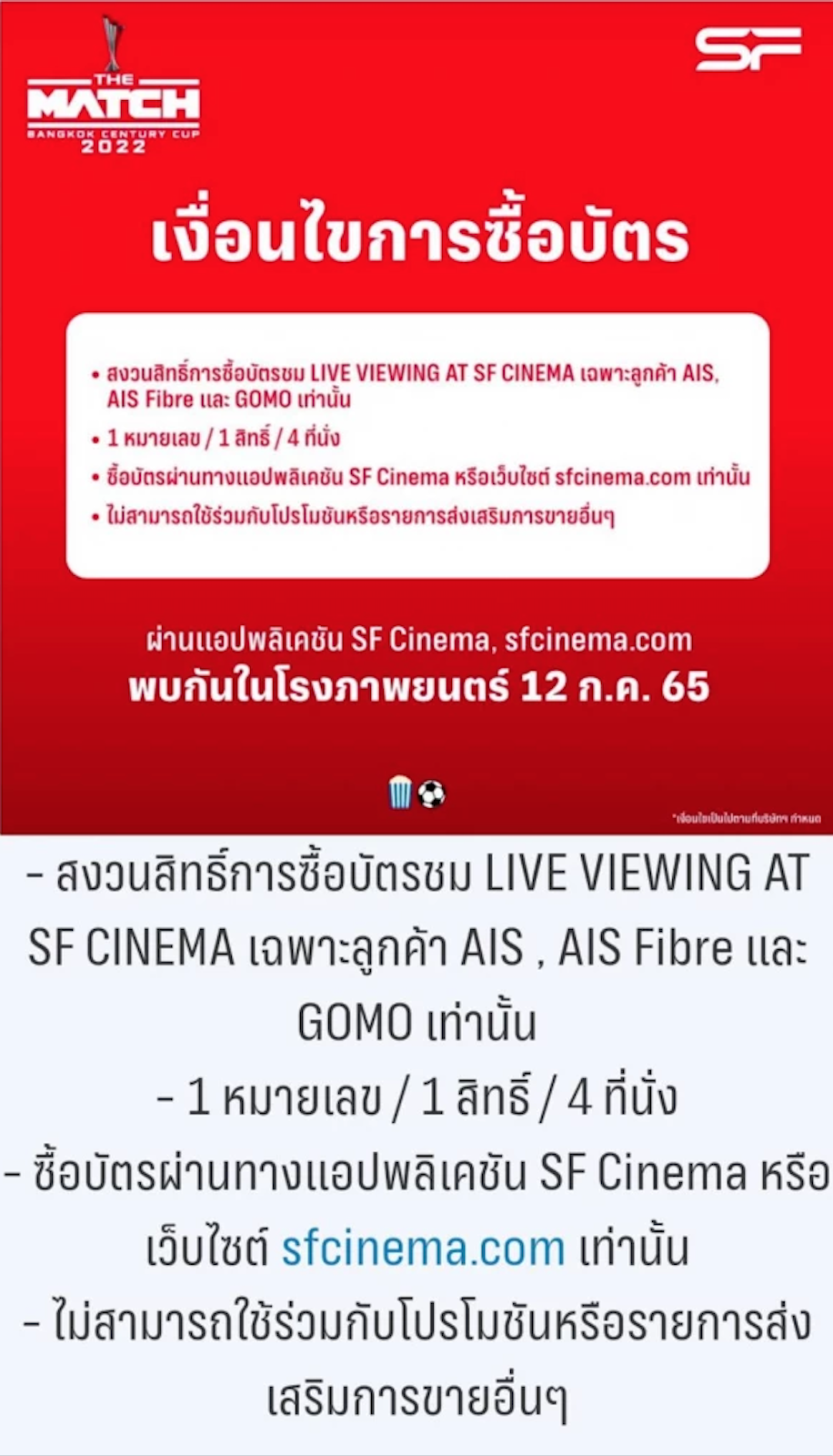 “THE MATCH Bangkok Century Cup 2022” อย่างเดียว ราคา 500 บาท