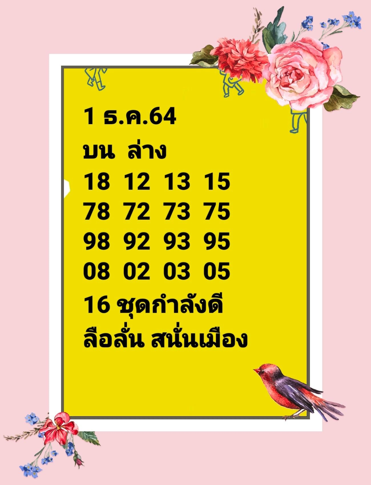 สำหรับเลขเด็ดจาก หวยแอดลือลั่นสนั่นเมือง งวด 1 ธันวาคม 2564 มีดังนี้