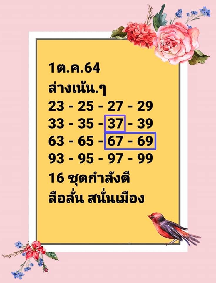 สำหรับเลขเด็ดเพิ่มเติมจาก หวยแอดลือลั่นสนั่นเมือง งวด 1 ตุลาคม 2564 มีดังนี้