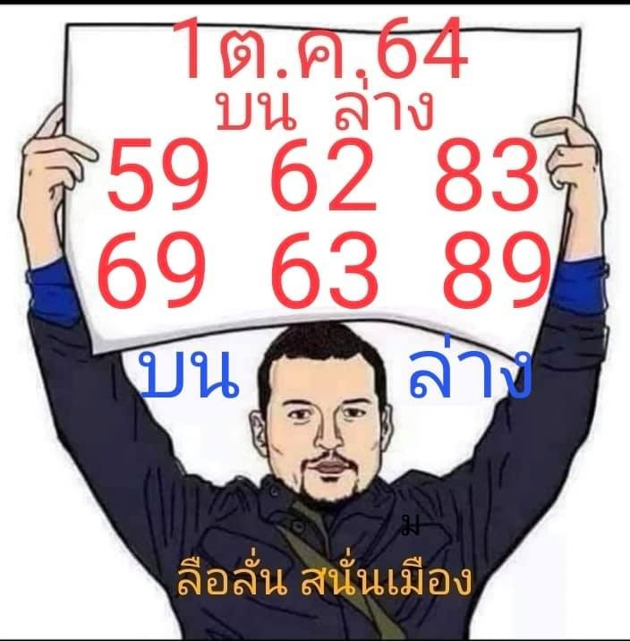 คัดมาแล้วเน้นๆหวย สลากกินแบ่งรัฐบาลสองตัวตรงงวดนี้ 1 ตุลาคม 2564 จากเพจดังอย่าง หวยแอดลือลั่นสนั่นเมือง ที่ก่อนหน้านี้ทางเพจได้ปล่อยเลขเด็ดสองตัวตรงมา 16 ตัว ให้คอหวยและนักเสี่ยงโชคได้ลองตามเลขที่ชอบพร้อมทั้งแนะเลขเน้นที่ทางเพจคิดว่าน่าลุ้นในงวดนี้