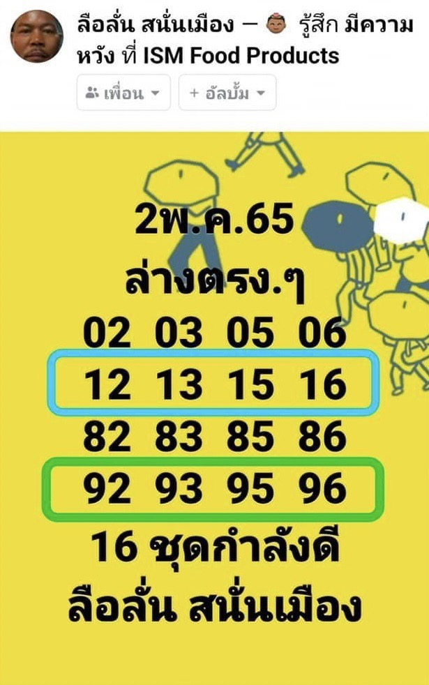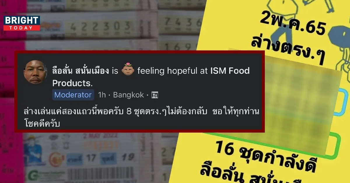 ซึ่งวันนี้ไบรท์ทูเดย์(Bright today) นำเลขเด็ดเน้นสองตัวเด่นจากเพจ หวยแอดลือลั่นสนั่นเมือง มาให้คอหวยและนักเสี่ยงโชคได้ตัดสินใจเพิ่มเติมในการซื้อหวย สลากกินแบ่งรัฐบาลในงวดนี้ โดยแอดมิน หวยแอดลือลั่นสนั่นเมือง ก็ได้มาบอกว่า ” ล่างเล่นแค่สองแถวนี้พอครับ 8 ชุดตรงๆ ไม่ต้องกลับขอให้ทุกท่านโชคดีครับ ”