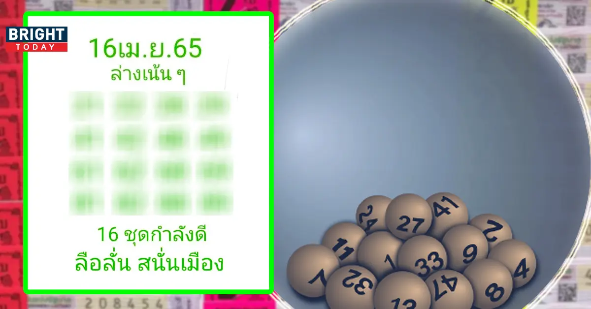เริ่มนับหนึ่งใหม่อีกครั้งหลังหวย สลากกินแบ่งรัฐบาลงวด 1 เมษายน 2565 ได้ประกาศผลไปสำหรับใครที่พลาดอย่าพึ่งหมดหวัง วันนี้ ไบรท์ทูเดย์(Bright today) รีบตามเลขเด็ด เลขดัง หวยดัง มาให้คอหวยและนักเสี่ยงโชคได้มีหวังตามหาตามซื้อเป็นเศรษฐีไปพร้อม ๆ กันในงวดนี้ 16 เมษายน 2565