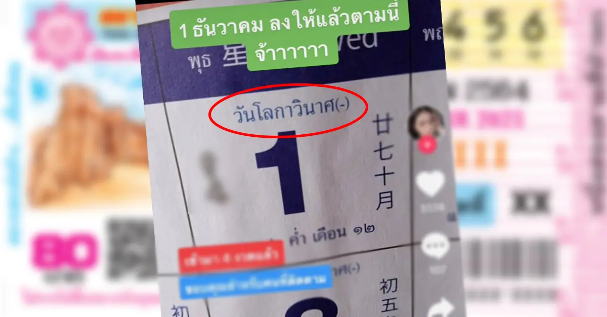 ส่องเลย รวมเลขเด็ด หวยปฏิทิน อะไรกันแน่ 1 ธค 64 ตรงกับวันโลกาวินาศ คอหวยนักเสี่ยงโชค อยากลองเสี่ยงดูหน่อยไหม??