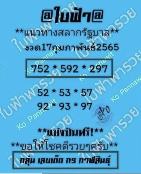 เลขเด็ด ใบฟ้าพารวย งวด 17 กุมภาพันธ์ 2565