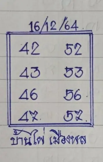 มาต่อกันในเจ้าสุดท้าย ซึ่งเลขเด็ด หวยบ้านไผ่เมืองพล งวดนี้ 16 ธันวาคม 2564 ที่เจ้าตัวแนะให้ลองเล่น สองตัวตรงมีดังนี้