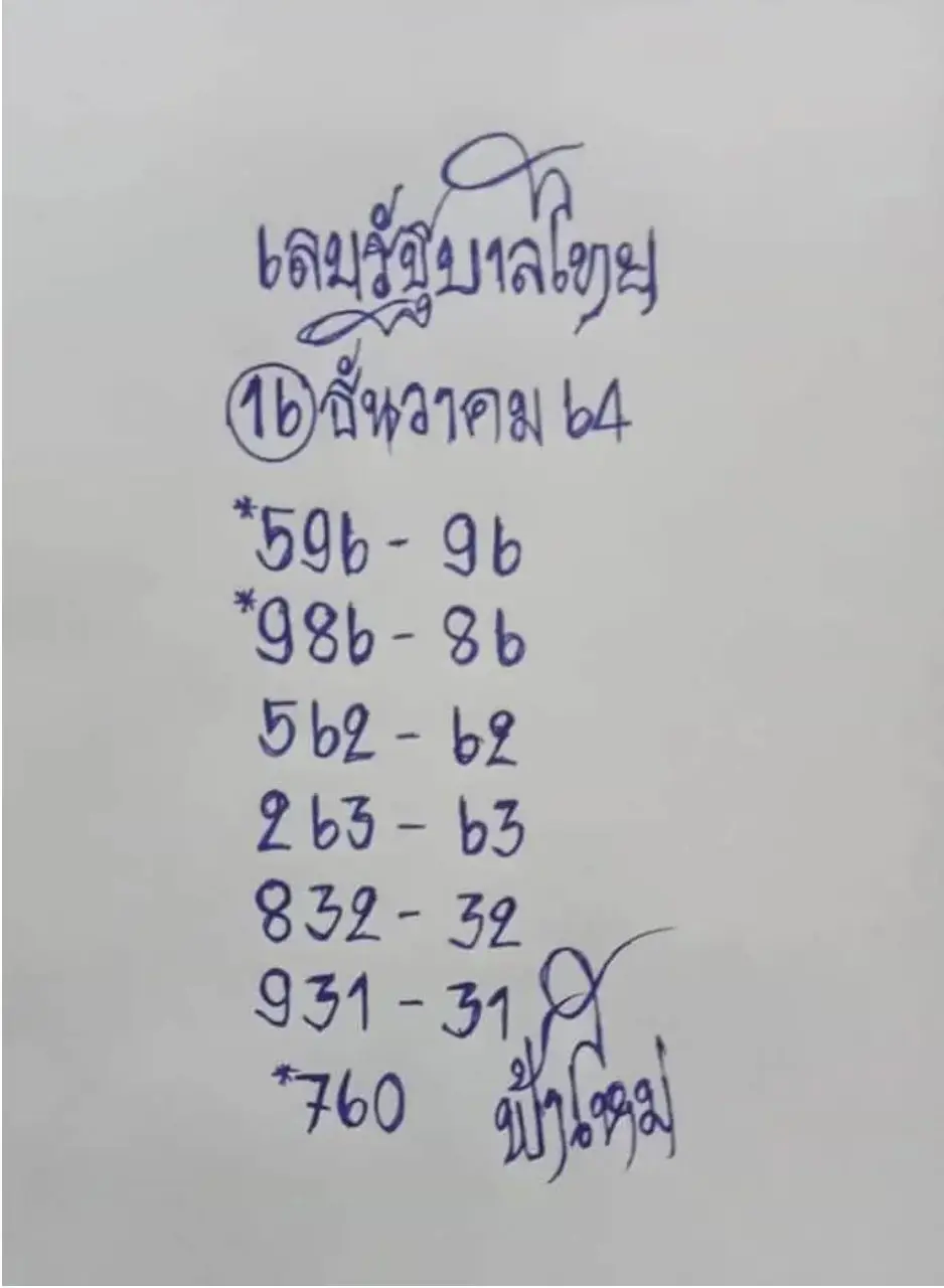 ต่อกันเลยแบบไฟแลบกับ ฟ้าใหม่ หวยกูยเซราะกราว ที่รอบนี้เน้นตัวเลข 3 ตัวตรงอย่าง 596 – 986 – 760 แถมยังให้เลขตัวเดียวอย่างเลข 6 มาอีกด้วย