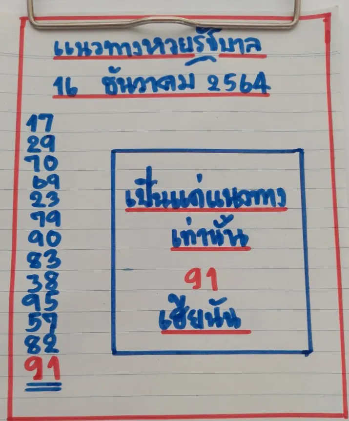 สำนักที่สองมาต่อกันที่ หวยเฮียนัน ที่รอบนี้ได้ให้เน้นเลขตัวแดงไว้คือ 91 พร้อมกับให้แนวทางตัวเลขมาอีกเพียบ!