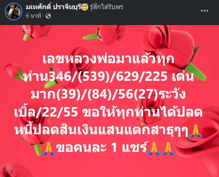 ล่าสุด พ่อน้ำสอง ก็ได้โพสต์รูปภาพและข้อความผ่านเฟสบุ๊คส่วนตัว มเหศักดิ์ ปราจีนบุรี หลังเจ้าตัวเดินทางไปเอาเลขเด็ดมาฝากเหล่าคอหวยและนักเสี่ยงโชคจากหลวงพ่อปลดหนี้ว่า “งวดนี้ลูกขอปลดหนีนะคับหลวงพ่อปลดหนี้สาธุๆๆพรุ่งนี้พร้อมหรือยังคับท่านปล่อยแนวทางเลขหลวงพ่อต้องใบแบบนี้เท่านั้นๆ“