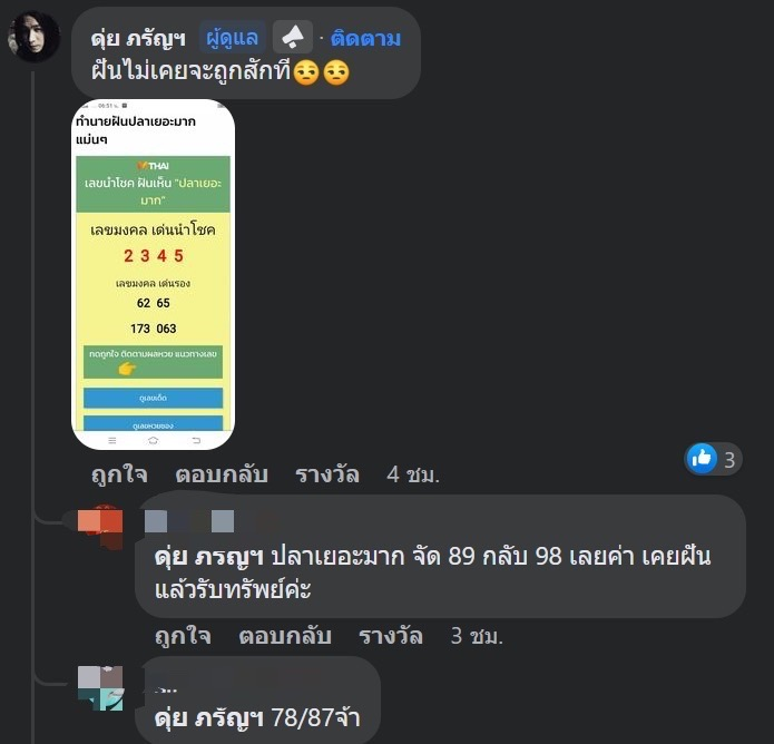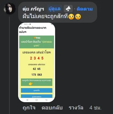 ล่าสุดกลุ่มแนวทางเลขเด็ด ดุ่ยภรัญฯ&ทะเลใจ ได้มีการอัพเดทแนวทางเลขเด็ดน่าสนใจโดยเจ้าของกลุ่มอย่าง ดุ่ย ภรัญฯ ได้เข้ามาคอมเมนต์พูดคุยกับเหล่าคอหวยงานนี้เจ้าตัวได้โชว์เลขเด็ด เลขความฝัน ที่เจ้าตัวบอกเลยว่าไม่มาสักทีเลขนี้ แต่คอหวยนักเสี่ยงโชคก็ร่วมเข้ามาคอมเมนต์บอกเลขเด็ดที่สามารถตีจากความฝันของ ดุ่ย ภรัญฯ เพิ่มเติมเพื่อไปเสี่ยงโชคในหวยงวดนี้ 1 มิถุนายน 2565