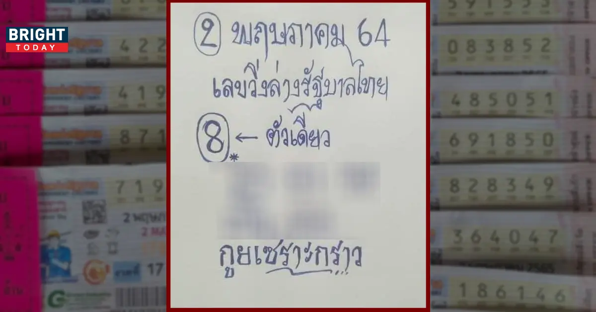 ล่าสุดทีมงาน ไบรท์ ทูเดย์(Bright today) ได้เข้าไปสอดส่องเลขเด็ดจาก หวยกูยเซราะกราว อีกครั้งและพบว่างวดนี้เลขเด็ดเน้นๆสองตัวตรงของแอด หวยกูยเซราะกราว ให้แนวทางไปที่เลขเด็ด 85 งานนี้ดูแล้วทั้งเลขเด็ดสองและสามตัวตรง หวยกูยเซราะกราว จะเน้นไปที่ 8 – 9 เป็นหลัก