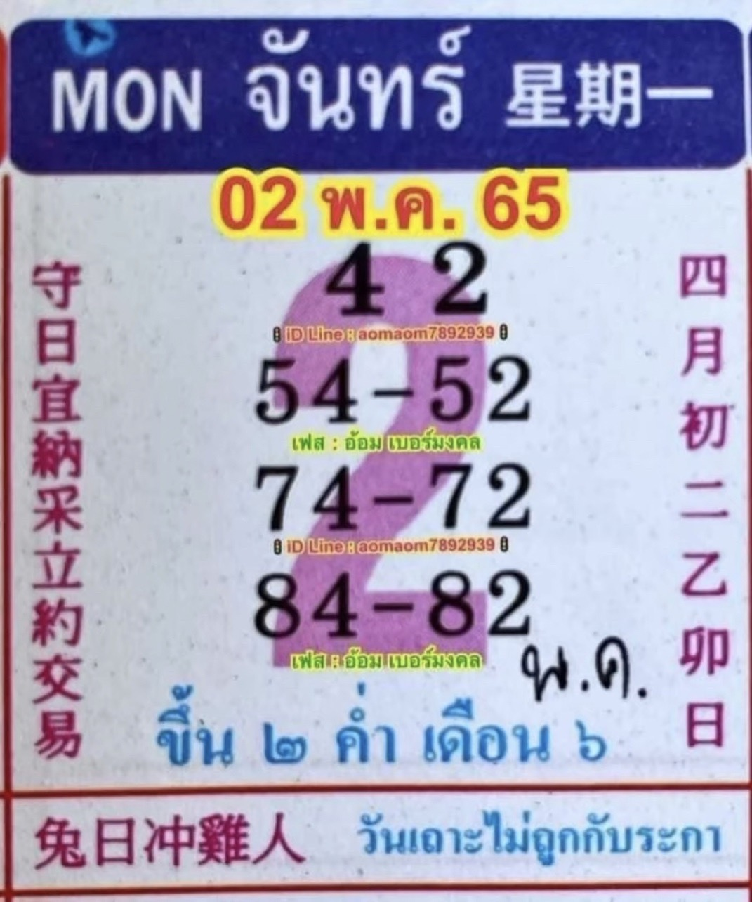 โดยก่อนหน้านี้ทางทีมงาน ไบรท์ ทูเดย์(Bright today) ได้นำเสนอแนวทางเลขเด็ดจากเลขชุดใน ปฏิทินคำชะโนด ให้เหล่าคอหวยได้ลองตามเสี่ยงโชคกันไปก่อนแล้ว โดยเลขเด็ดในปฏิทินคำชะโนดวันที่ 2 พฤษภาคม 2565 ปรากฏเป็นเลขเด็ดน่าสนใจคือเลขเด็ด 4 – 2 พร้อมแนะเลขเด็ดสองตัวตรงเป็นเลข 54 – 52 – 74 – 72 – 84 – 82