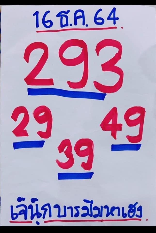 โดยเลขเด็ดงวดนี้สองตัวตรง เจ๊นุ๊ก บารมีมหาเฮง เน้นไปที่เลขเด็ดสองตัวตรงอย่าง 29 – 39 – 49 และเลขเด็ดสามตัวตรง เจ๊นุ๊ก ก็ได้เน้นไปที่เลขเด็ดอย่าง 293