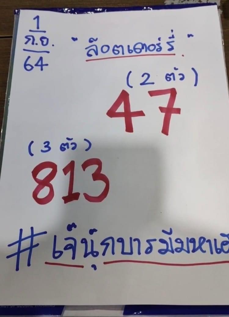 ซึ่งไม่กี่วันก่อนหน้านี้ เจ๊นุ๊ก บารมีมหาเฮง ได้ปล่อยแนวทางเลขเด็ดสองตัวและสามตัวที่เจ้าตัวชอบผ่านเพจเฟสุบ๊ค “เจ๊นุ๊ก สำนักเลขเด็ด2 “ โดยเลขเด็ดสองตัวตรงเจ้าตัวมุ่งเน้นไปที่เลขเด็ดอย่าง 47 และสามตัวตรงงวดนี้เน้นไปที่ 813