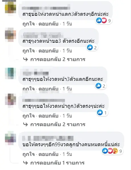 ขณะที่แฟนคลับและคอหวย เข้ามาแสดงความคิดเห็นจำนวนมากซึ่งส่วนใหญ่ขอบคุณสำหรับเลข 3 ตัวตรง และอยากถูกหวยอีกเป็นงวดที่ 4