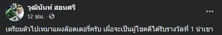 ล่าสุด วุฒินันท์ สอนศรี หรือ ไก่ เจ้าพายุ โพสต์เฟซบุ๊กส่วนตัวแนะแนวทางการซื้อลอตเตอรี่ หรือ หวย เลข 2 ตัวตรง และ 3 ตัวตรง ดังนี้