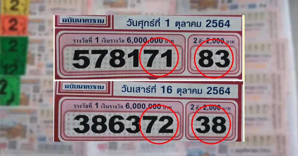 ซึ่งดันไปตรงกับเลขใน 2 งวดที่ผ่านมาเมื่อ 1 ตุลาคม และ 16 ตุลาคม 64 โดยเลขท้าย 2 ตัวเหมือนกันอย่างกับแกะ เพียงแค่สลับกันไปมา โดยที่เลขเด่น ๆ ที่ นำมาแต่ไกลเลยคือ 7-3-8
