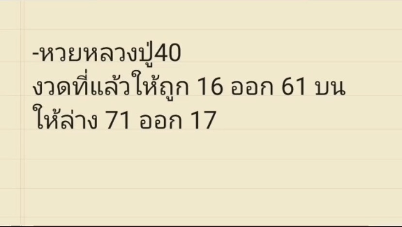 มาใหม่น่าสนใจ หวยหลวงปู่40 งวดที่แล้วให้เข้าเต็มๆทั้งบนทั้งล่าง งวดนี้น่าลุ้น 1/7/64 ปล่อยเลขเด็ดสองตัวตรงมาแล้วให้คอหวยนักเสี่ยงดวงได้ตามต่อตามรวยไปด้วยกัน