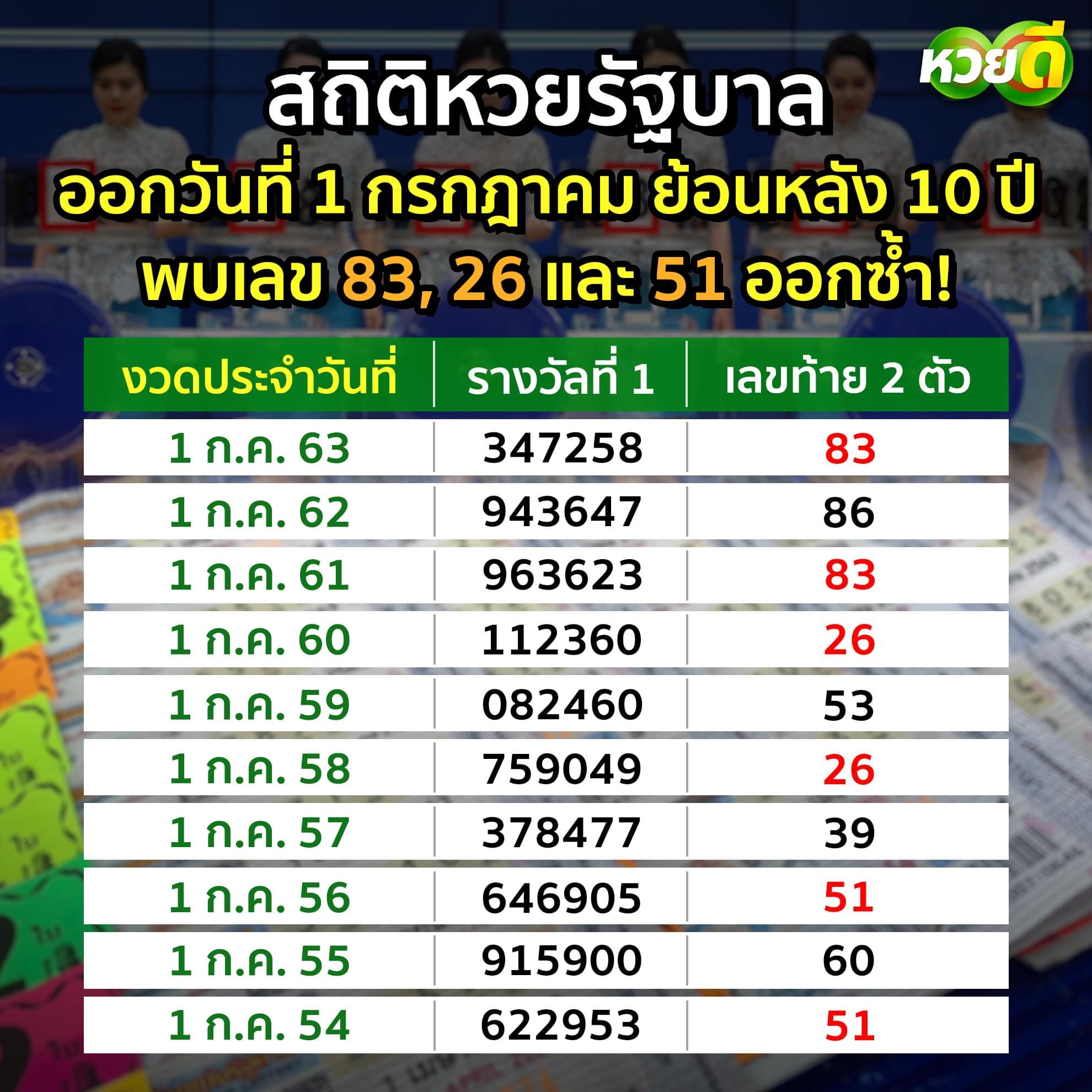 เลขเด็ดน่าสนใจของ หวยหลวงปู่40 อีกตัวหนึ่งก็คือ 38 เพราะเลขนี้มีสถิติที่น่าสนใจในวันที่ 1 กรกฎาคม ย้อนหลัง10ปีที่แล้ว 38/83 ออกซ้ำถึง 2 ครั้ง ล่าสุดปีที่แล้วเมื่อวันที่ 1 กรกฎาคม 2563 เลขท้ายสองตัวตรงก็ออกเลข 83 มาแล้ว
