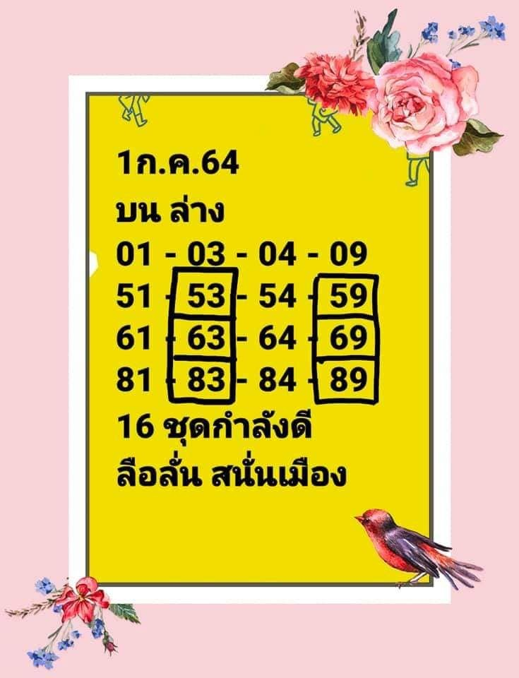 เลขเด็ดจาก หวยแอดลือลั่นสนั่นเมือง มาครบทั้งบนทั้งล่างงวด 1 กรกฎาคม 2564 มีดังนี้