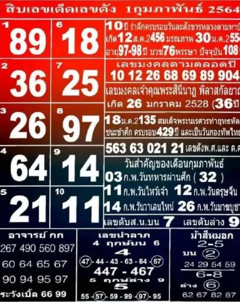 เลข 2 ตัว ที่กำลังมาแรงคือ 89 – 36 – 26 – 64 – 21 – 18 – 25 – 97 – 14 – 11 – 98