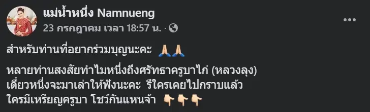 ถึงแม้จะประกาศลั่นว่าจะขอหยุดจุดธูปปู่หนึ่งงวดสำหรับ เจ้าแม่นักแนะแนวทางเลขเด็ดชื่อดัง แม่น้ำหนึ่ง ภิรดา ธนโชติจินดา จนล่าสุดเมื่อวันที่ 23 กรกฎาคม 2564 แม่น้ำหนึ่ง ก็โพสต์ผ่านเฟสบุ๊คส่วนตัวถึงแฟนคลับคอหวยและนักเสี่ยงโชคที่อยากร่วมทำบุญ สร้างวิหารให้แก่ วัดป่าปฐม (ครูบาไก่) ที่เจ้าตัวนับถือมานานมากแล้ว