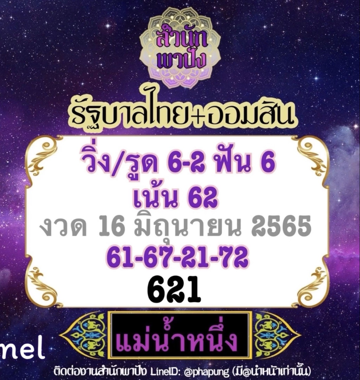 จัดด่วน! เลขเด็ดงวดนี้ หวยรัฐบาลไทย แม่น้ำหนึ่ง ภิรดา ปล่อยแนวทางชุดเต็ม 16/06/65 ฟันมาแล้วสองและสามตัวตรงคอหวยห้ามพลาด