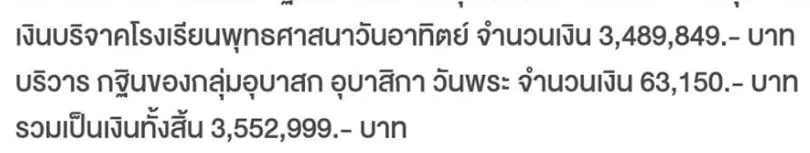 โดยตัวเลขที่คอหวยเข้ามาจับจ้องและ ตีความหมายจากยอดกฐินเมื่อวันที่ 1 พ.ย. 2564 ที่ผ่านมานั้น จากจำนวนยอดเงินทั้งหมด 3,552,999 บาท ที่วัดชลประทานรังสฤษดิ์