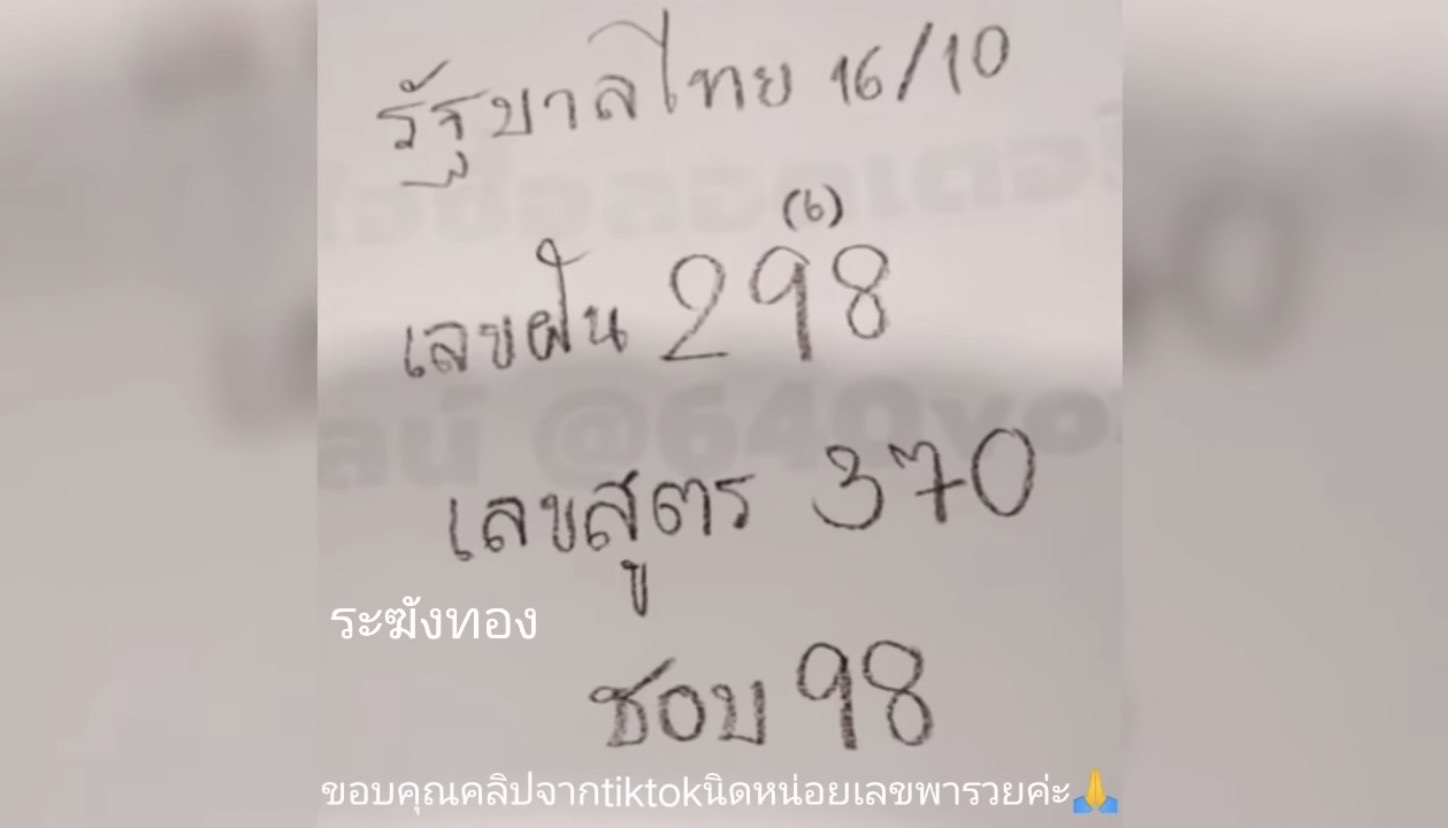 ล่าสุด ไบรท์ทูเดย์ (Bright Today) ตรวจสอบ Tiktok ของ นิดหน่อยพารวย หลังจากไลฟ์สดครั้งล่าสุดพบว่าได้ให้แนวทางการเสี่ยงดวงซื้อลอตเตอรี่ 16 ต.ค. 64 ซึ่งมีตัวเลขที่น่าสนใจดังนี้