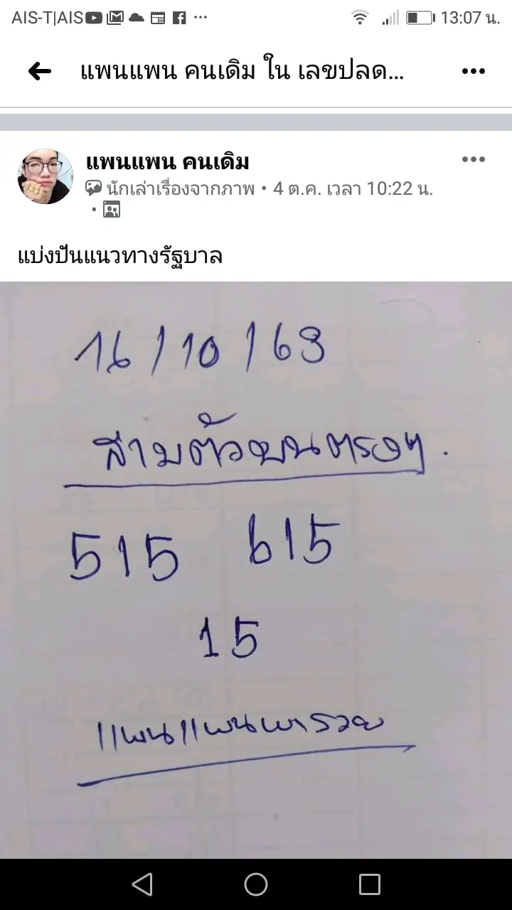 ล่าสุดผู้ใช้เฟซบุ๊ก แพนแพน คนเดิม นักใบ้ตัวเลขชื่อดัง แนะทางการซื้อลอตเตอรี่ และหวย งวดวันที่ 16 พ.ย.นี้ ทั้ง 2 ตัวตรง และ 3 ตัวตรง