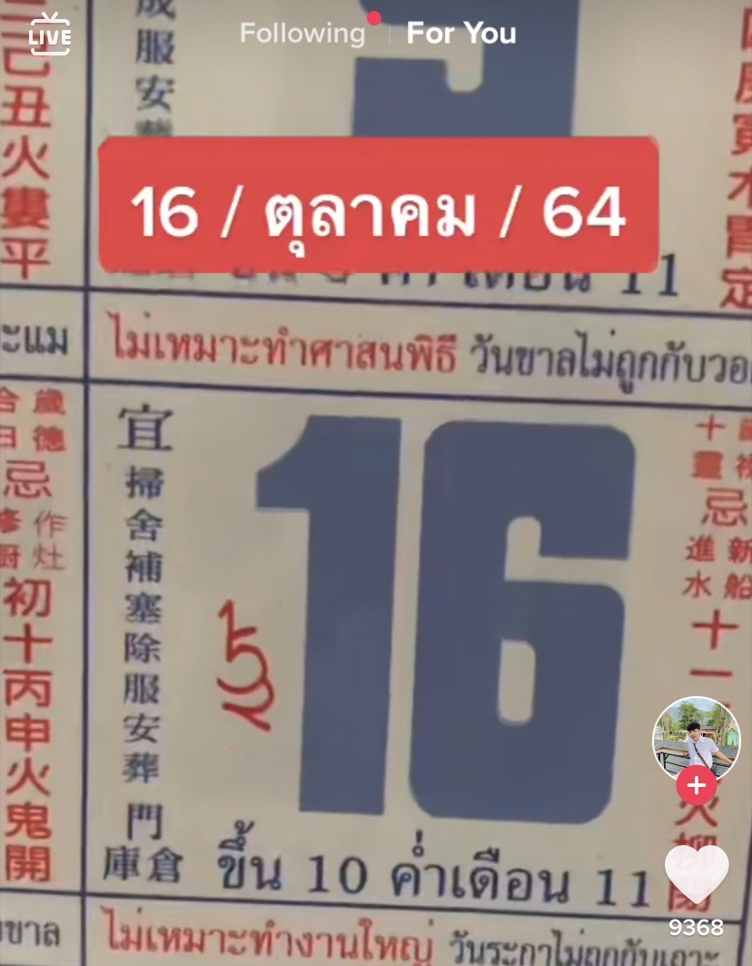 กระแสมาแรงต่อเนื่อง! สำหรับเลขเด็ดจาก หวยปฏิทิน ที่ให้เลขเด็ดเข้าเป้ามาแล้วหลายงวดก่อนหน้านี้ ล่าสุดงวดนี้ 16 ตุลาคม 2564 เหล่า User Tiktok ก็ออกมาแจกเลขเด็ดจาก หวยปฏิทิน กันเป็นจำนวนมาก