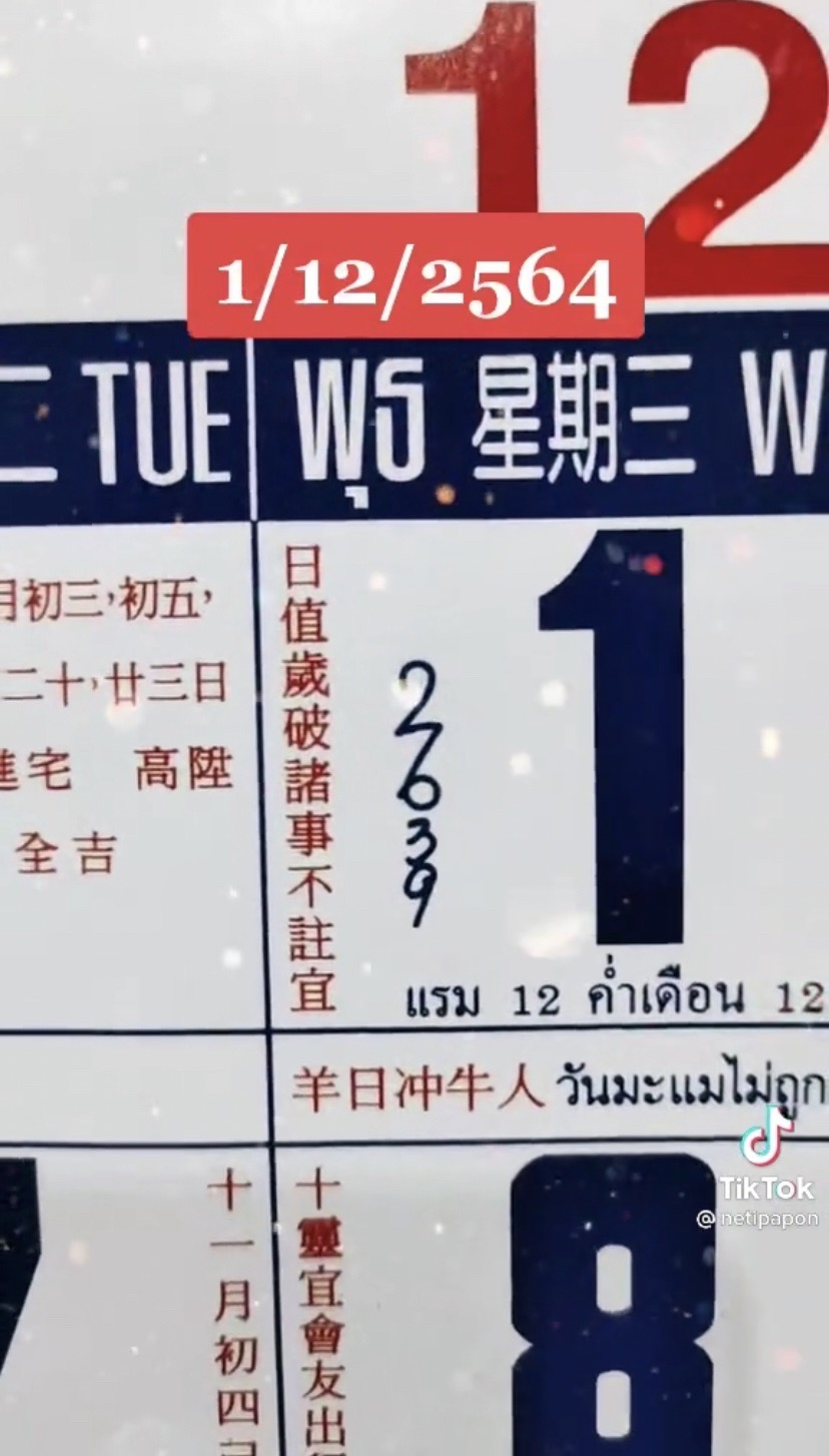 งวดนี้ 1 ธันวาคม 2564 เลขเด็ดจาก หวยปฏิทิน มีดังนี้