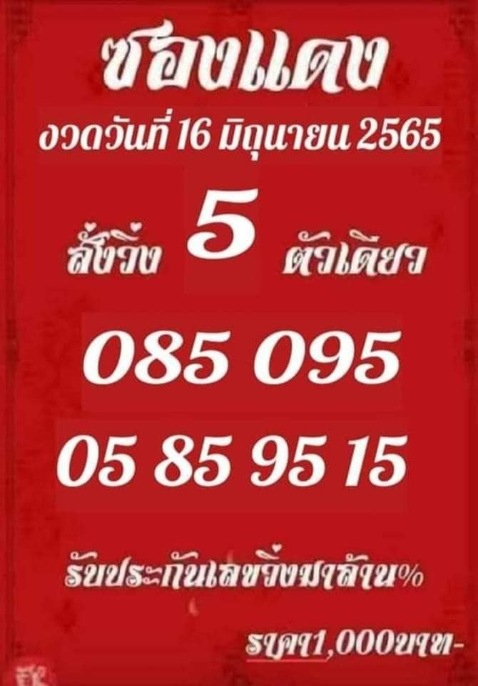 จับตาไว้ให้ดี! เลขเด็ด หวยซองแดง ฟันแนวทางงวดนี้ 16/06/65 วิ่ง 5 ตัวเดียวรวย คอหวยนักเสี่ยงโชคห้ามพลาดรีบซื้อด่วน