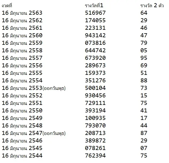 ย้อนดู สถิติหวย ออกวันที่ 16 มิถุนายน ย้อนหลัง 20 ปี คอหวยนักเสี่ยงจับตาให้ดี 4-1-7 ออกบ่อยที่สุด คอหวยนักเสี่ยงดวงจับตาลองเคาะเลขเด็ดไปพร้อมกัน