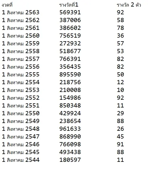 กระแสยังมาแรงและคอหวยและนักเสี่ยงโชคก็ยังคงตามเลขเด็ดจาก สถิติหวย เป็นส่วนใหญ่ ด่วนล่าสุด ไบรท์ ทูเดย์ (Bright today) นำ สถิติหวย ออกวันที่ 1 สิงหาคม ย้อนหลัง20ปี มาให้คอหวยและนักเสี่ยงโชคได้รู้ก่อนใครว่าเลขเด็ดเลขไหนน่าซื้อและคาดว่ามีสิทธิ์ออกมากที่สุด