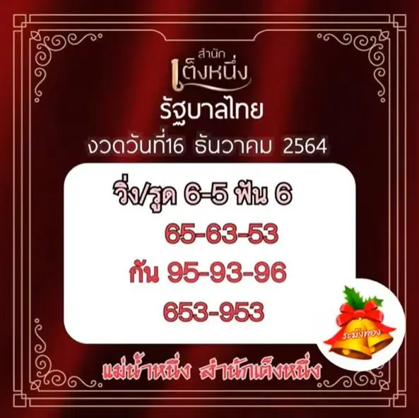 หวยแม่น้ำหนึ่ง 16 ธันวาคม 64 มาแล้ว ขีดเส้นใต้เลขตัวแดง เน้นที่ 6 เท่านั้น ส่วนสีมงคลในงวดนี้คือ สีแดง