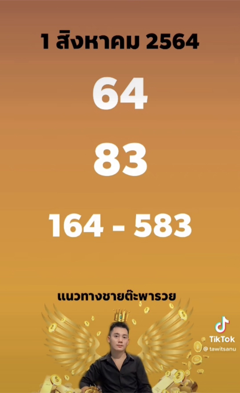 สำหรับงวดนี้ 1 สิงหาคม 2564 “tawitsanu” หรือ แนวทางชายต๊ะพารวย ก็ได้ปล่อยเลขเด็ดในTiktok user “tawitsanu” มาให้คอหวยนักเสี่ยงดวงได้ตามกันต่อแล้วทั้งสองตัวตรงและสามตัวตรง จะมีเลขไรบ้างมารับชมกัน