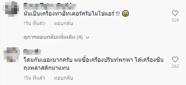 หลังจากเรื่องราวถูกเผยแพร่ออกไปก็ได้รับความสนใจจากชาวเน็ตเป็นจำนวนมาก พร้อมทั้งยังได้มีชาวเน็ตหลายรายเข้ามาร่วมแสดงความคิดเห็น โดยระบุว่า เคยคิดจะสั่งเหมือนกัน แต่ดูในยูทูปก่อน มันเป็นเครื่องปรับอุณหภูมิสำหรับเมืองหนาวมากกว่า , แอร์ 1,700 ต้องมีสติก่อนสั่งนะคะ , โดนกันเยอะมากครับ ผมสั่งเครื่องปรินต์พกพา ได้เครื่องซีนถุงพลาสติกมาแทน