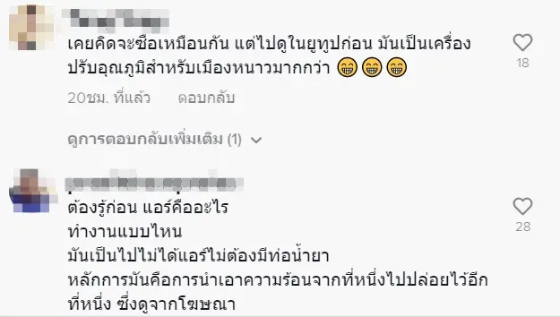 หลังจากที่ได้รับสินค้า ผู้ซื้อก็ได้นำสินค้านวัตกรรมตัวดังกล่าวมารีวิวผ่านแอปฯ Tiktok และสินค้าที่ได้มานั้นเป็นภาษาจีน ซึ่งทางผู้สั่งซื้อก็บอกว่าไม่เป็นไรโดยระหว่างรีวิวได้อธิบายว่า “แอร์มีขนาด 12,000 Btu ในราคา 1,790 พอส่งมาจีนแดงชัดๆ อันนั้นไม่ใช่ประเด็นถ้าเย็นพอรับได้แต่พอเปิดนึกว่าเตาปิ้งย่างชัดๆ”