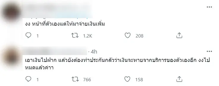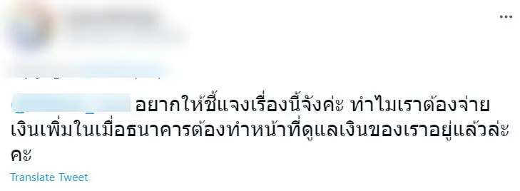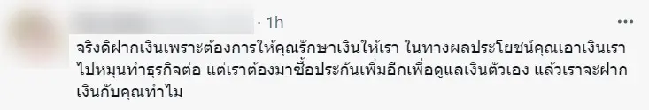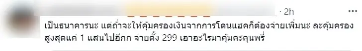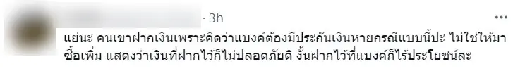 โดยชาวเน็ตส่วนใหญ่ก็ออกมาแสดงความเห็นเป็นเสียงเดียวกันว่า ทำไมลูกค้าต้องมาซื้อประกันเพิ่ม เพราะเรื่องแบบนี้ควรเป็นหน้าที่ของธนาคารที่ต้องจัดการระบบของตัวเองมากกว่า