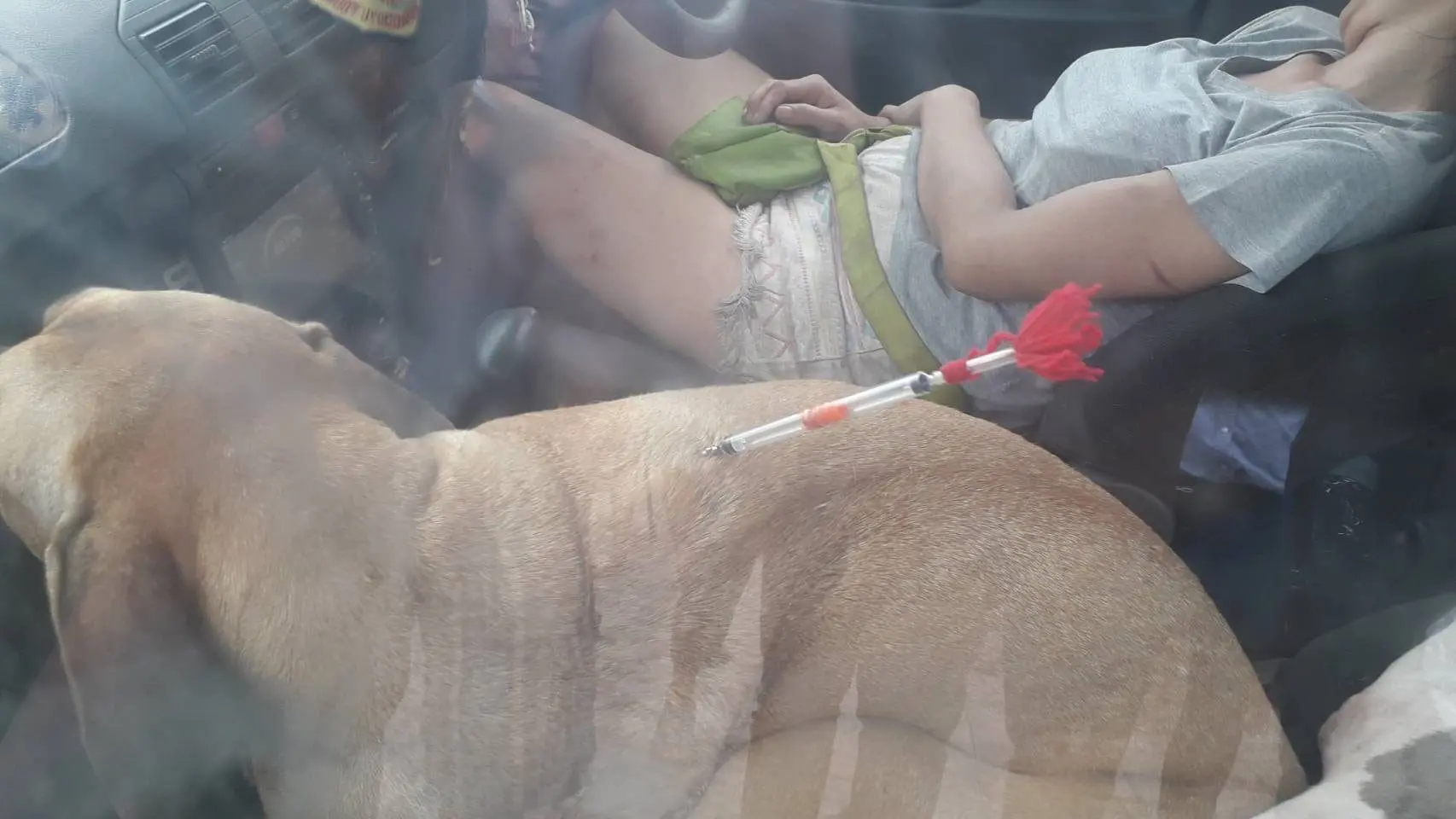 เจ้าหน้าที่ และมูลนิธิวอชด็อก ช่วยเหลือกันวุ่น เจ๊หงษ์ ขับรถยนต์ตระเวนจนน้ำมันหมด ก่อนจับตัวส่งโรงพยาบาล ส่วน หมาพิทบูล มีคนรับไปดูแลแล้ว