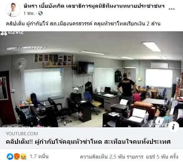 นอกจากนี้ ทนายษิทรา ยังได้โพสต์ข้อความในเพจเฟซบุ๊ก ษิทรา เบี้ยบังเกิด เลขาธิการมูลนิธิทีมงานทนายประชาชนฯ ว่า พรุ่งนี้ผมจะเปิดหลักฐาน ตบทรัพย์ซ้อนตบทรัพย์ รอชมในเพจนี้ที่เดียวครับ