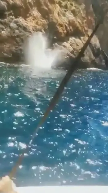 ซึ่งชายดังกล่าวโชคไม่ดีกระโดดลงจากหน้าผาสูงตระหง่าน แต่การกระโดดของเขาไม่เป็นไปอย่างที่คิด เมื่อร่างของเขาตกลงบนหินที่แหลมคมและขรุขระด้านล่างอย่างแรง ก่อนที่ร่างของชายรายนี้จะตกลงไปในน้ำ ส่งผลให้ลูกเมียปล่อยเสียงกรีดร้องอันน่าตกใจ