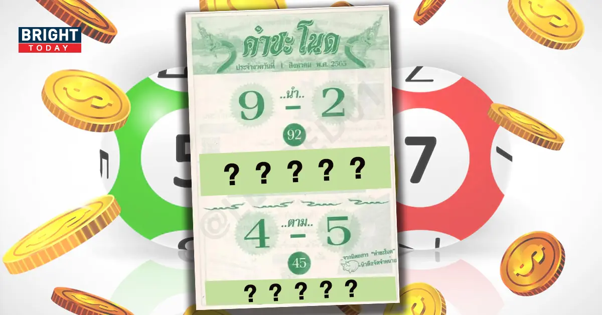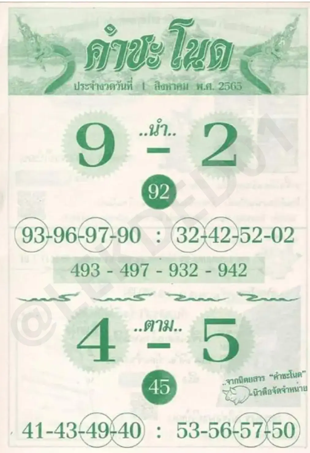 ส่งท้ายงวดวันที่ 1 สิงหาคม 2565 หวยงวดนี้! คำชะโนด ใบเขียว หวยรัฐบาล เลขดังงวดนี้ นำ9-2 ตาม4-5 ปล่อบครบทุกเลข