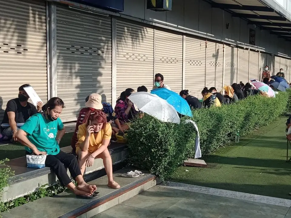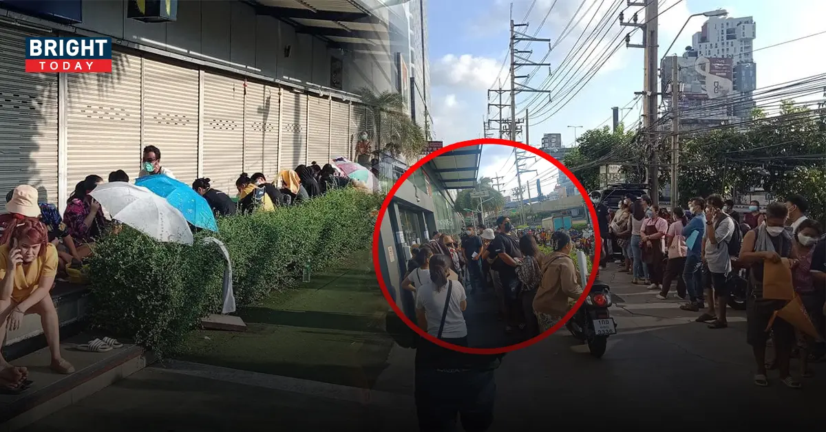 “ #ภาพบรรยากาศ ในตอนนี้ คนประมาน 2000คน ที่รู้และไม่รู้ต่าง ๆ คนที่มา รอ ตั้งแต่เมื่อวาน ไม่ต้อง คิดมากนะครับ ที่มารอกัน 500 คิวแรก ได้เข้าตาม ระเบียบ นะ รอเจ้าหน้าที่ เขามาดูแลนะครับ เปิดให้ทำงานตามเวลา เริ่ม 08.30