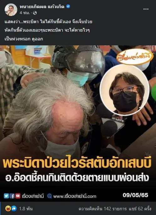 ทนายเกิดผล แนะนำ พระบิดา โจเซฟ กินขี้ตัวเองด้วย จะได้หายป่วย หลังผลตรวจร่างกายพบ พระบิดา ป่วยเป็น ไวรัสตับอักเสบบี