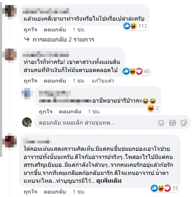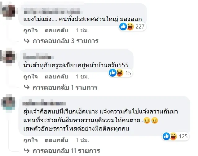 ทั้งนี้ทางด้านชาวเน็ตต่างแห่เข้าคอมเม้นท์ใต้โพสต์นี้ว่า แย่งไม่แย่ง คนทั้งประเทศส่วนใหญ่ มองออก, ตอนเจอกันในโหนกระแส ก็บอกอยากแนะนำ พอได้ดิวคุณแม่ แนะนำตัวรู้จักคนใหญ่คนโตให้ฟัง มีรึแม่จะไม่อยากให้ทำคดีให้ แต่ใครๆก็เรียก อ. จ๊กกรู๊……. ควรบอกแม่มากกว่าว่าให้ผมช่วยแนะนำพอแล้วครับ ให้เด็กมันโตกันบ้างผมก็หลากสีแล้ว, ทำอะไรก็ทำครับ! เขาตาสว่างทั้งแผ่นดินส่วนคนที่หิวเงินก็ให้มันตาบอดตลอดไป