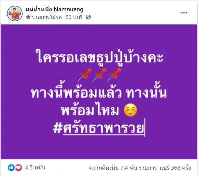 ขณะที่คอหวยเข้ามาแสดงความคิดเห็นเหมือนกันคือ ศรัทธาพารวย, พร้อมมาก รอเลข, สาธุ สาธุ, พร้อมมากค่ะแม่ศรัทธาพารวย