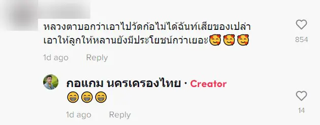 พร้อมระบุว่า “ไม่ต้องรอชาติหน้า ได้ชาตินี้ล่ะบุญนั้นเอ้าเริศสสส 10 10 10”